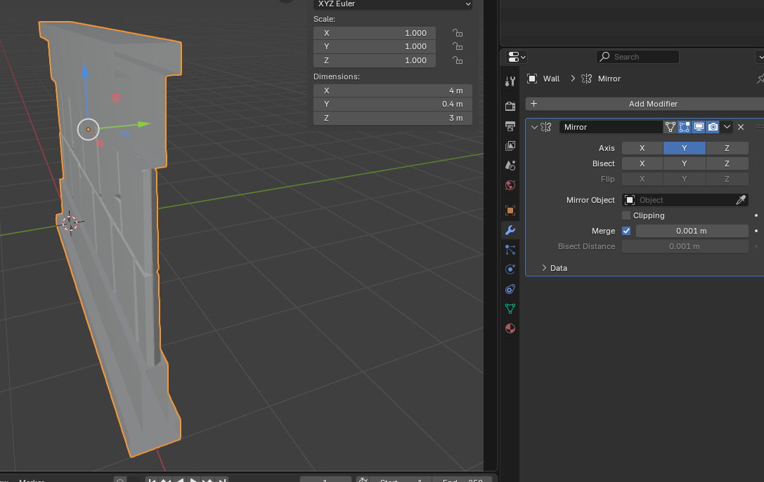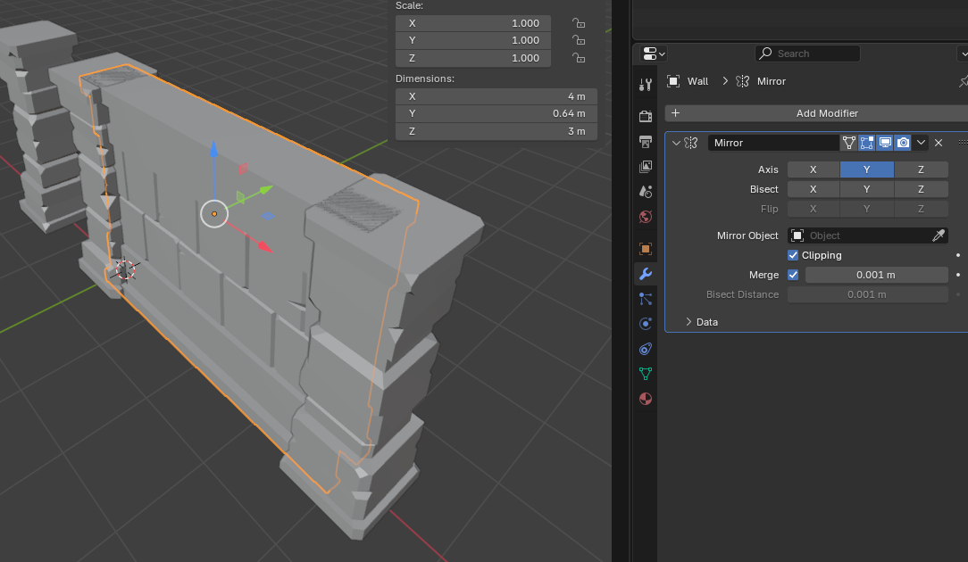 Y축 방향으로 Mirror 하면 양면의 벽이 생기게 된다.