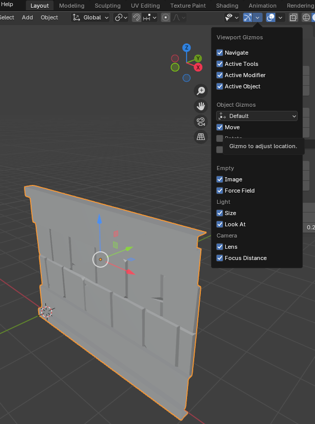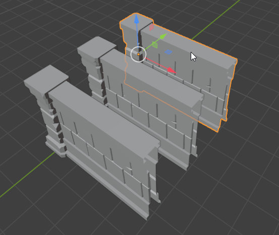 각 벽의 Modifier를 Apply한 후 [Ctrl + J] 단축키를 이용해 옆의 기둥과 합친다. 기둥을 나중에 선택해야 기둥의 Origin을 기준으로 합쳐져서 나중에 배치하기 좋다.