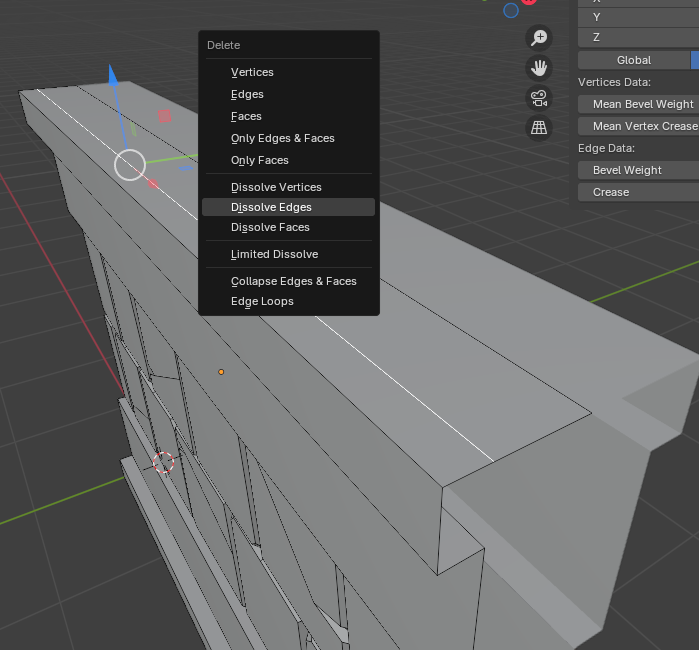 *참고로, 같은 평면 중 딱히 영향을 주지 않는 엣지를 지울 때는 [Dissolve Edge]를 사용하면 면이 없어지지 않고 필요없는 엣지만 지울 수 있다.