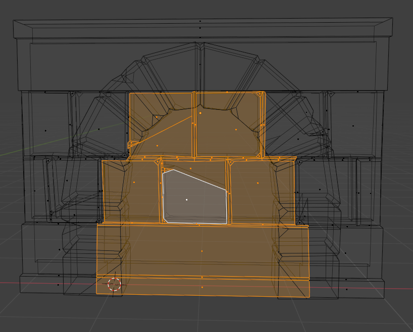 Wireframe 뷰로 벽의 [Edit] 모드에서 문이 뚫려야 하는 부분의 Face를 지운다.