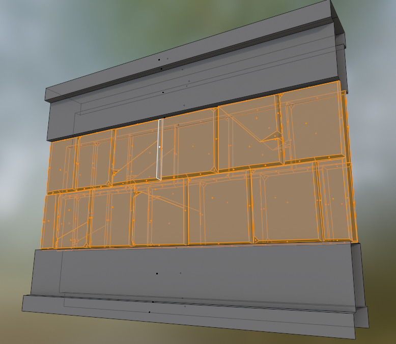 엣지를 잡고 베벨을 넣고, 가운데 엣지는 [Individual Origins]로 스케일을 줄이면 벽돌끼리 잘 구별된다.