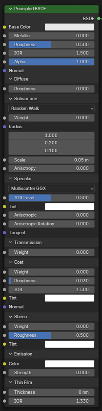 *블렌더 BSDF의 Default 값은 아래와 같다.
