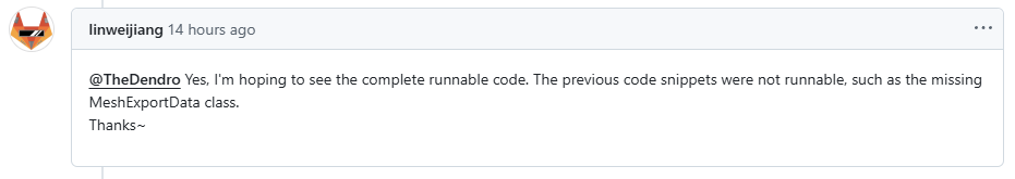 MeshExportData 클래스에 대한 내용이 없어서 코드 실행이 불가능하다…