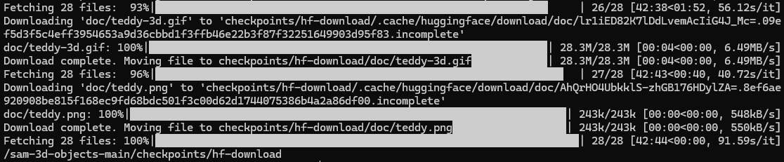 다시 환경 설치를 진행한다. 잘 되면 “To activate this environment, use $ conda activate sam3d-objects”라는 문구를 보게 된다.