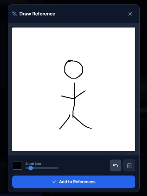 Reference Images 에 사진 추가할 수 있는 버튼 옆에 참조 이미지를 마우스로 직접 그릴 수 있게 팝업이 하나 떠서 참조 이미지로 추가할 수 있도록 만들어줘.