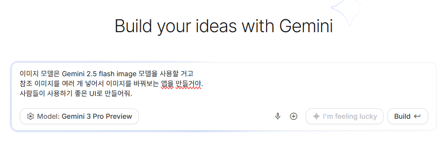 Google AI Studio 사이트에서 Build를 눌러서 메뉴에 진입한다.