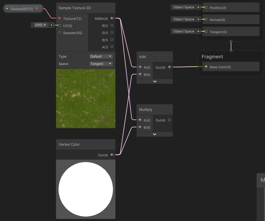 특정 텍스쳐와 더하거나 곱하면 효과를 나타낼 수 있는데, 잘 이용하면 라이트맵 베이크를 할 수 없는 상황에서 Ambient Occlusion처럼 이용하거나 저렴한 라이트맵처럼 이용할 수도 있다고 한다. 버텍스 컬러는 버텍스가 기본적으로 가지고 있는 값이므로 저렴하게 이용할 수 있어서 파티클, 이펙트에서 흔하게 사용한다고 한다.
