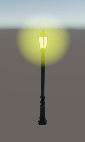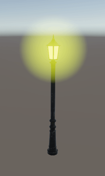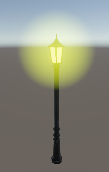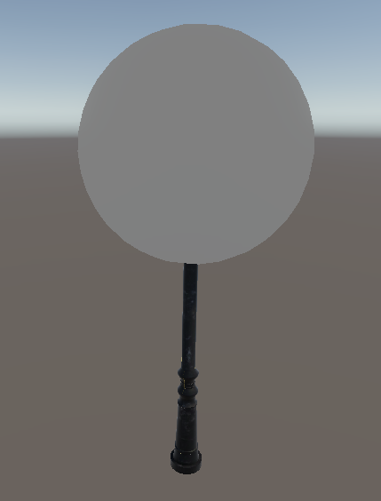 책의 예제와 같이, 무료 가로등 에셋을 받아서 프레넬 효과를 적용해 줄 Sphere 하나를 가로등에 씌워준다.