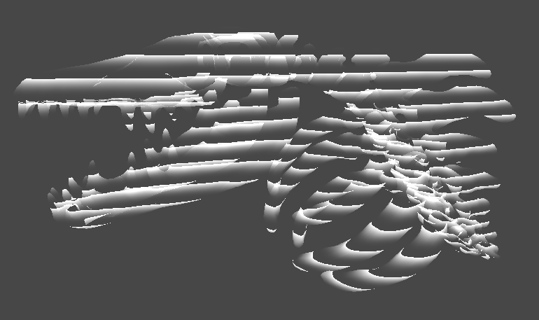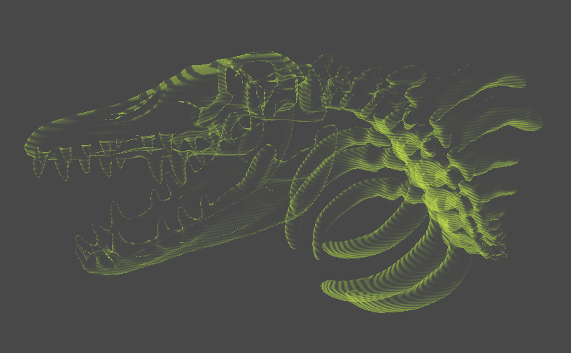 이제 줄무늬를 넣어서 홀로그램 효과를 극대화해본다. 마치 공룡 영화에 나오는 화석 홀로그램처럼?