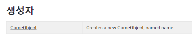생성자로 새로운 게임 오브젝트를 만들어낼 수 있다.