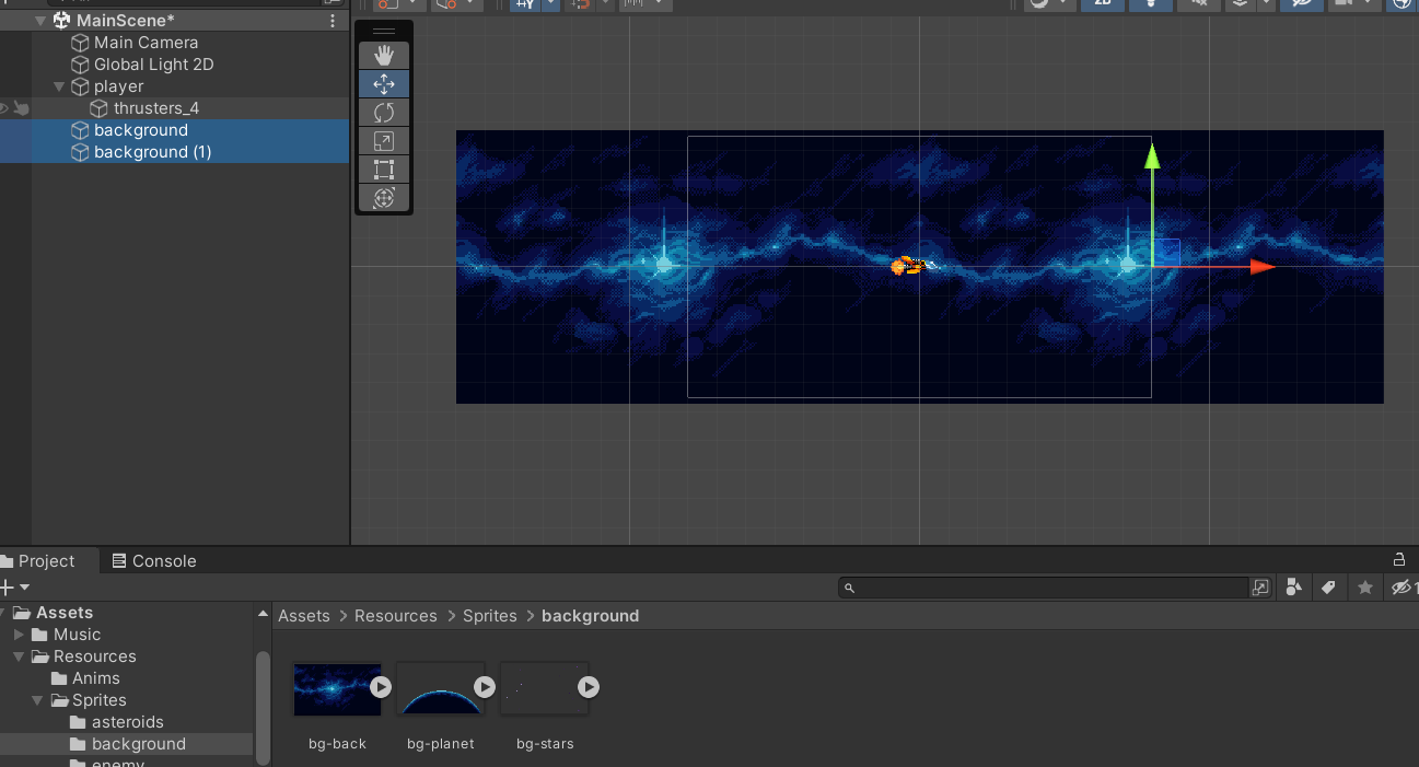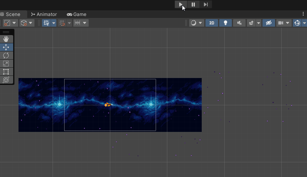 배경 별이 새로 생성되는 높낮이와 흘러가는 속도를 랜덤하게 float 형태로 설정해줄 것이다. void Start()에 초기 랜덤 값을 넣고 배경 별 스프라이트가 되돌아갈 때 다시 랜덤 실수를 부여하여 새로운 속도와 높이로 흘러가게 한다. 랜덤 값을 어디에 두느냐에 따라 별이 아예 멈춰있는 오류가 나올 수 있어서 몇 번 시도해보았다.