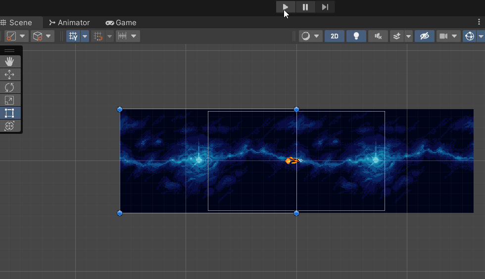 배경화면 에셋을 하나 복사하여 두개를 나란히 V키 스냅을 이용해 위와 같이 배치한다. Pixels Per Unit 값을 조정해 화면보다 조금 크게 조절한다.