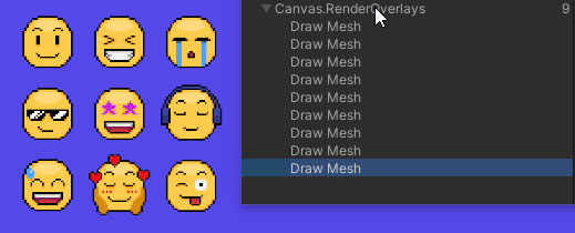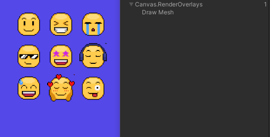 UI 이미지를 넣듯 2D 상에 9가지의 이모지를 골라서 씬에 올려보았다.