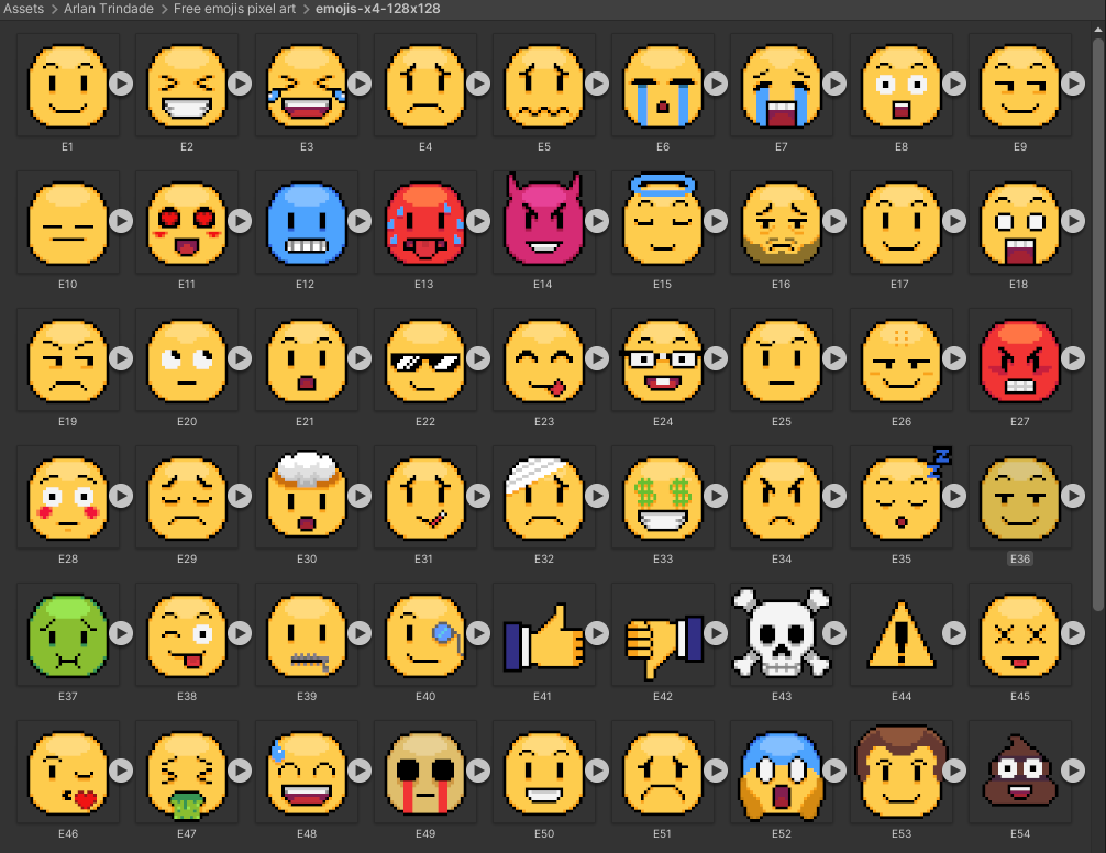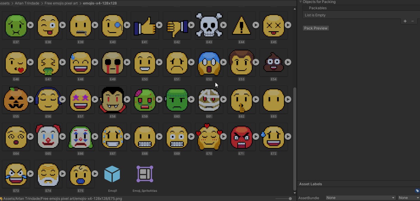 해당 이모지를 받아서 Package Manager로 프로젝트에 import를 시켜주면 많은 이모지 스프라이트들이 들어있는 것을 확인할 수 있다.