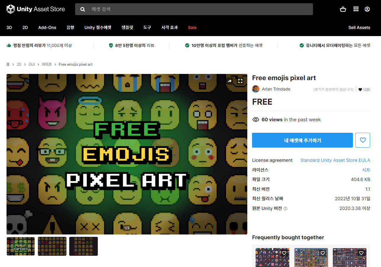먼저, 에셋 스토어에 있는 무료 이모지를 이용해서 기능을 사용해보려고 한다. (링크)