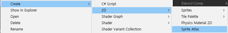 이제 프로젝트 안에 Sprite Atlas를 생성하여 어떤 변화가 있는지 살펴보자.