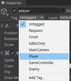 Inpector 창에서 태그를 부여할 수 있다.