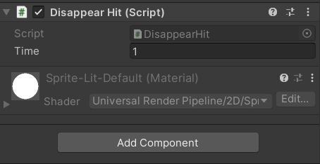 Hit 애니메이션과 마찬가지로, 애니메이션 1번 재생 후 사라져야 하기 때문에 Hit에 쓰인 스크립트를 그대로 적용한다.