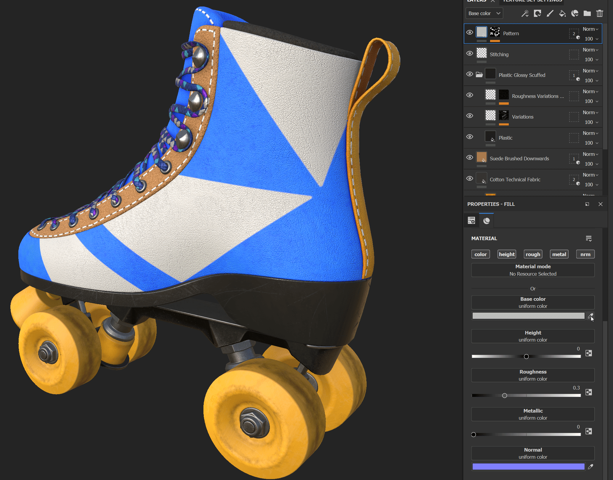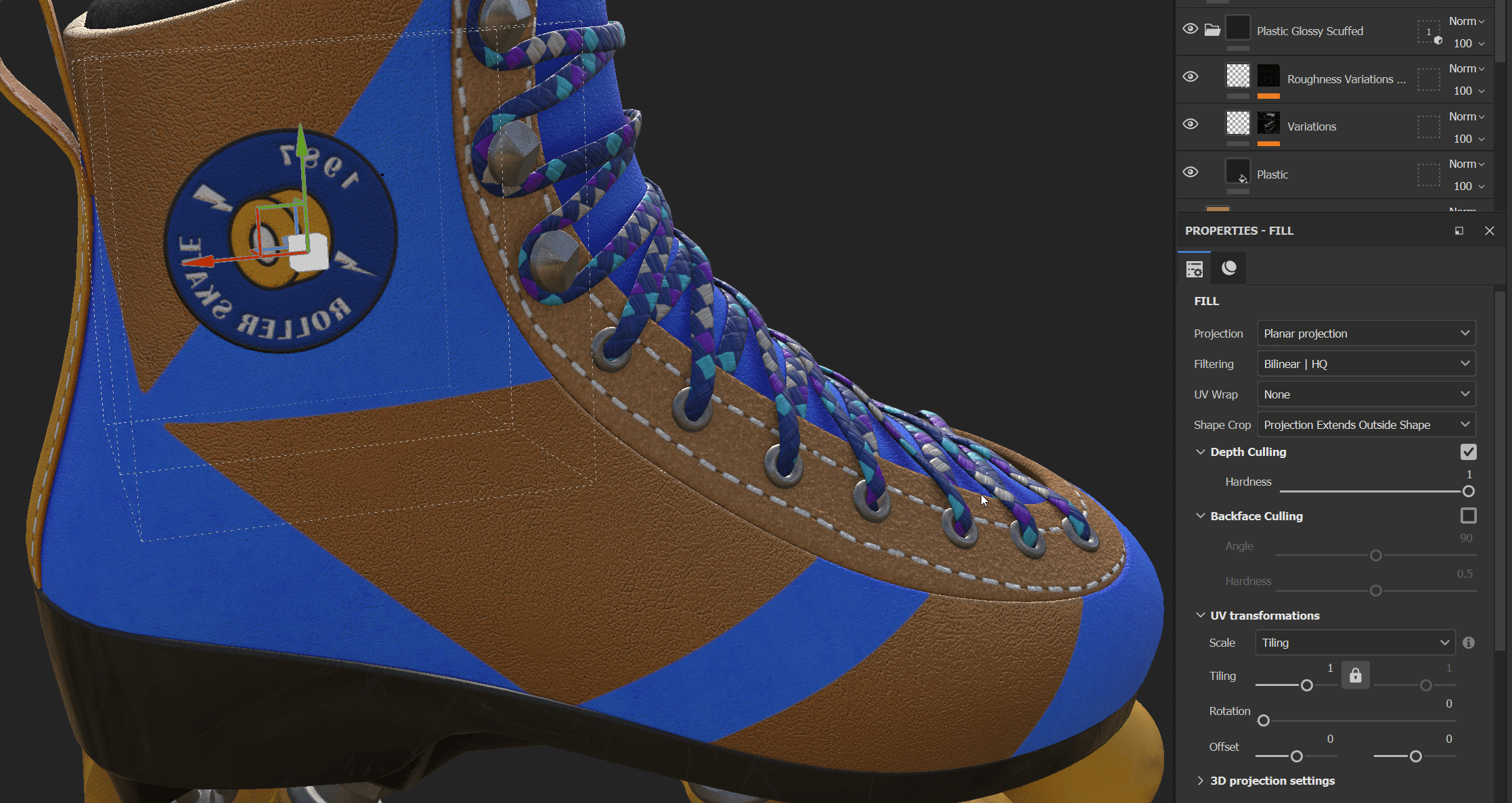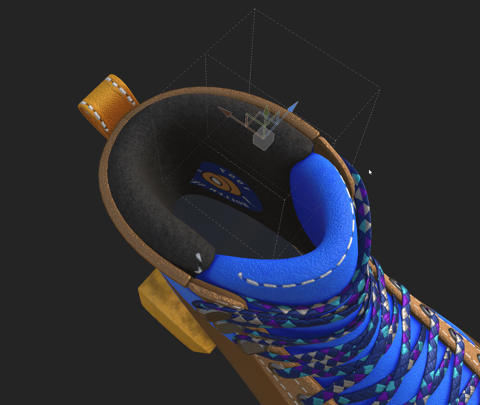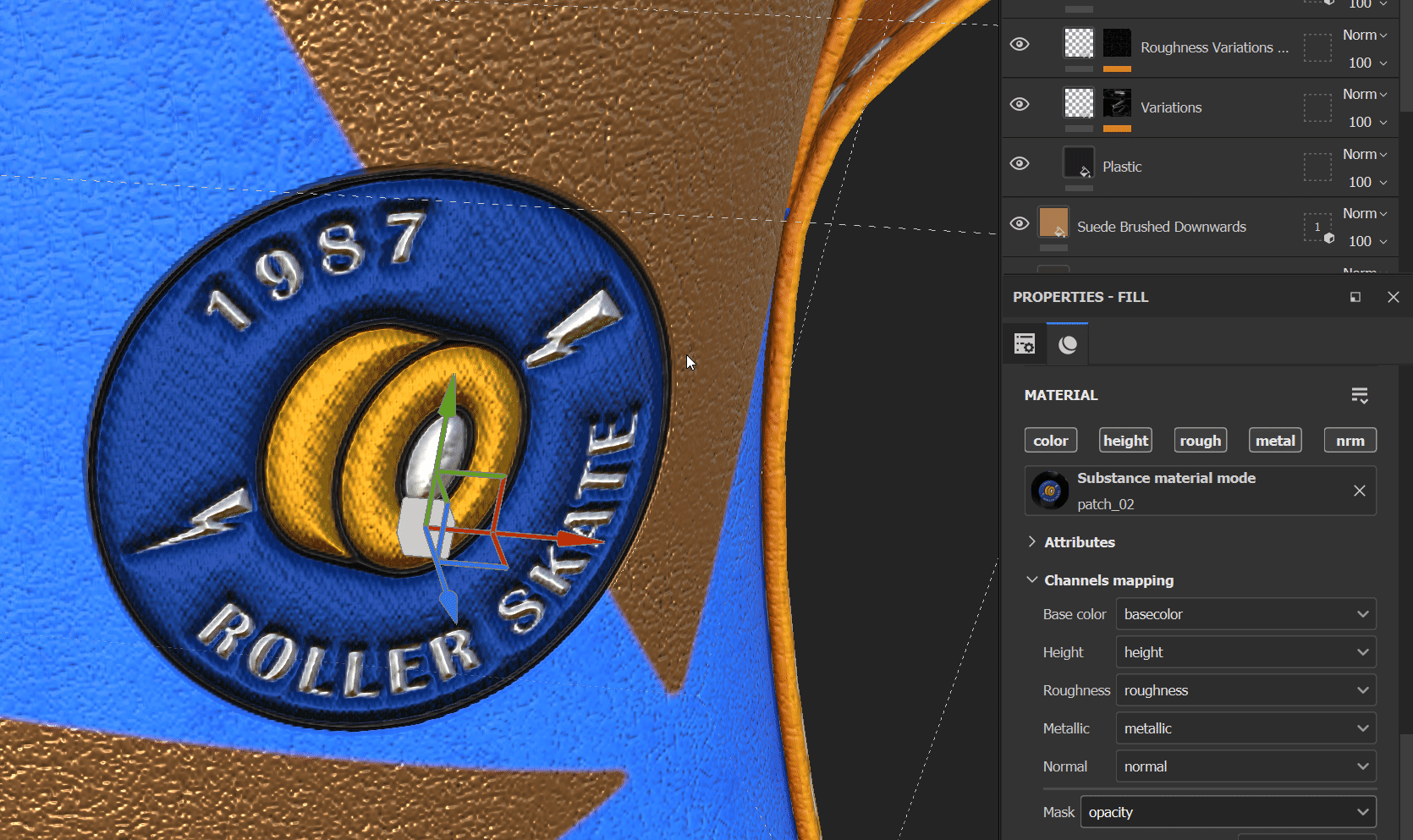 "patch_02"라는 이름으로 패치가 들어온 것을 material libraries에서 확인할 수 있고, 드래그 앤 드랍하여 부츠에 적용한다.