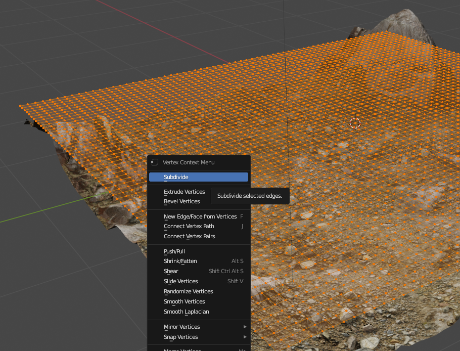 Normal - Strength / Displacement - Scale 조절 가능. 메쉬가 나눠져 있어야 높이 조절 가능하기 때문에 Subdivide 하여 적용하였다.